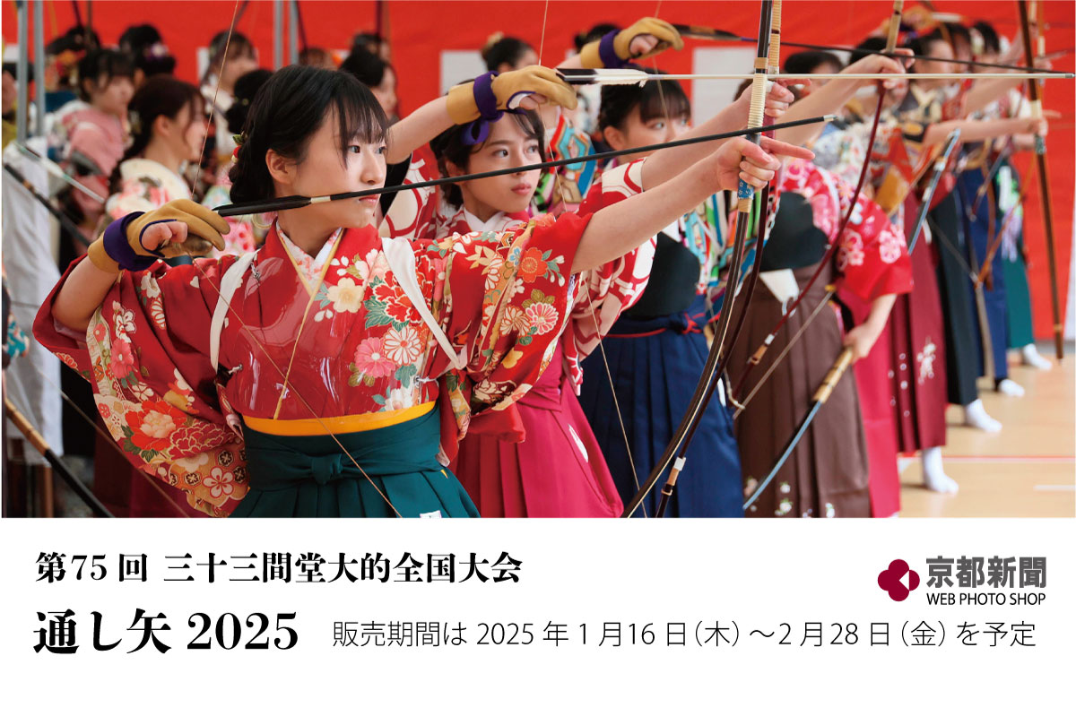 「第75回三十三間堂大的全国大会 通し矢2025」の写真を1月16日(木)から販売開始予定です。