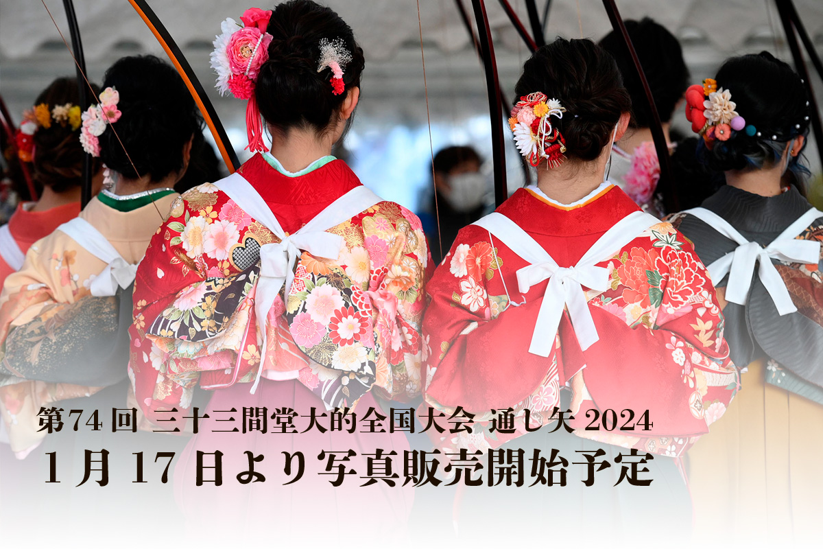 「第74回三十三間堂大的全国大会 通し矢2024」の写真を1月17日(水)から販売開始予定です。